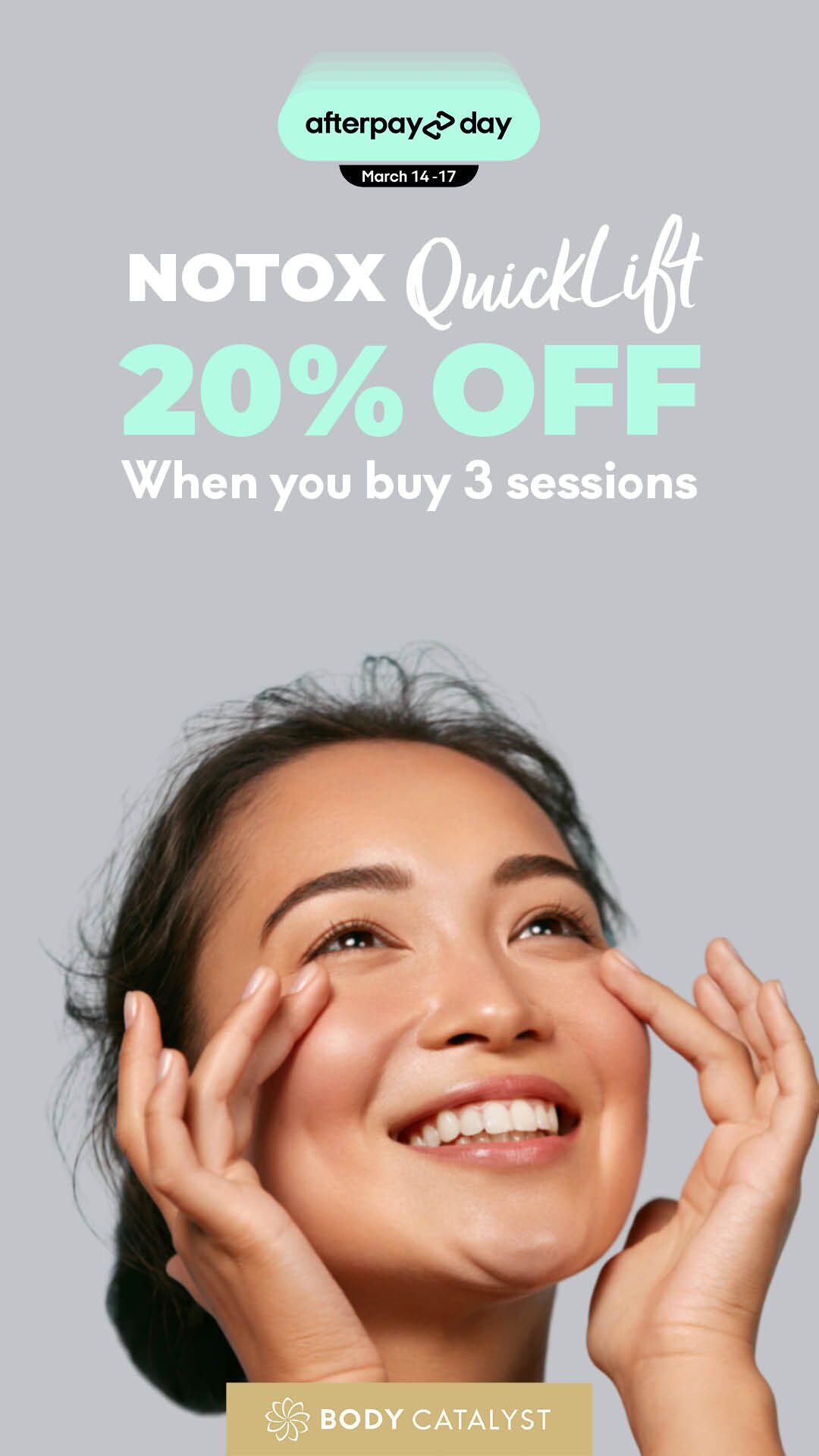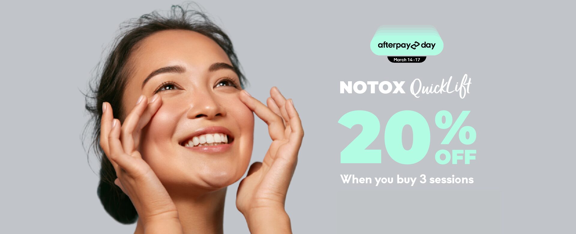 Don’t let your appearance be an AfterThought this AfterPay Day! Get 20% off when you purchase 3 x NOTOX QuickLifts.